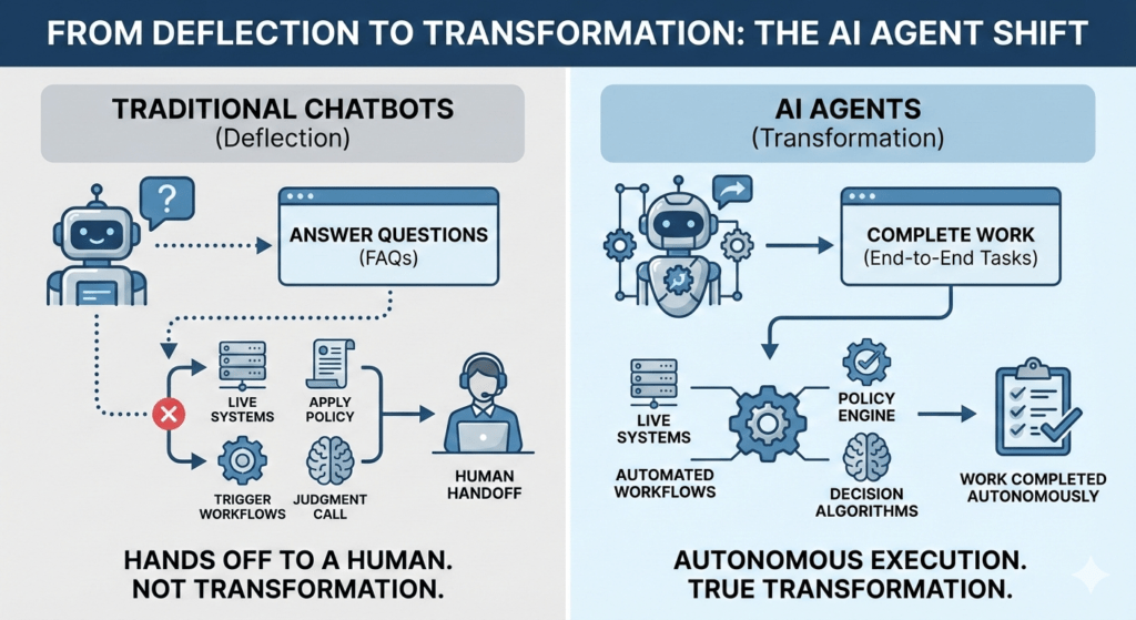 Traditional chatbots and copilots can answer questions.